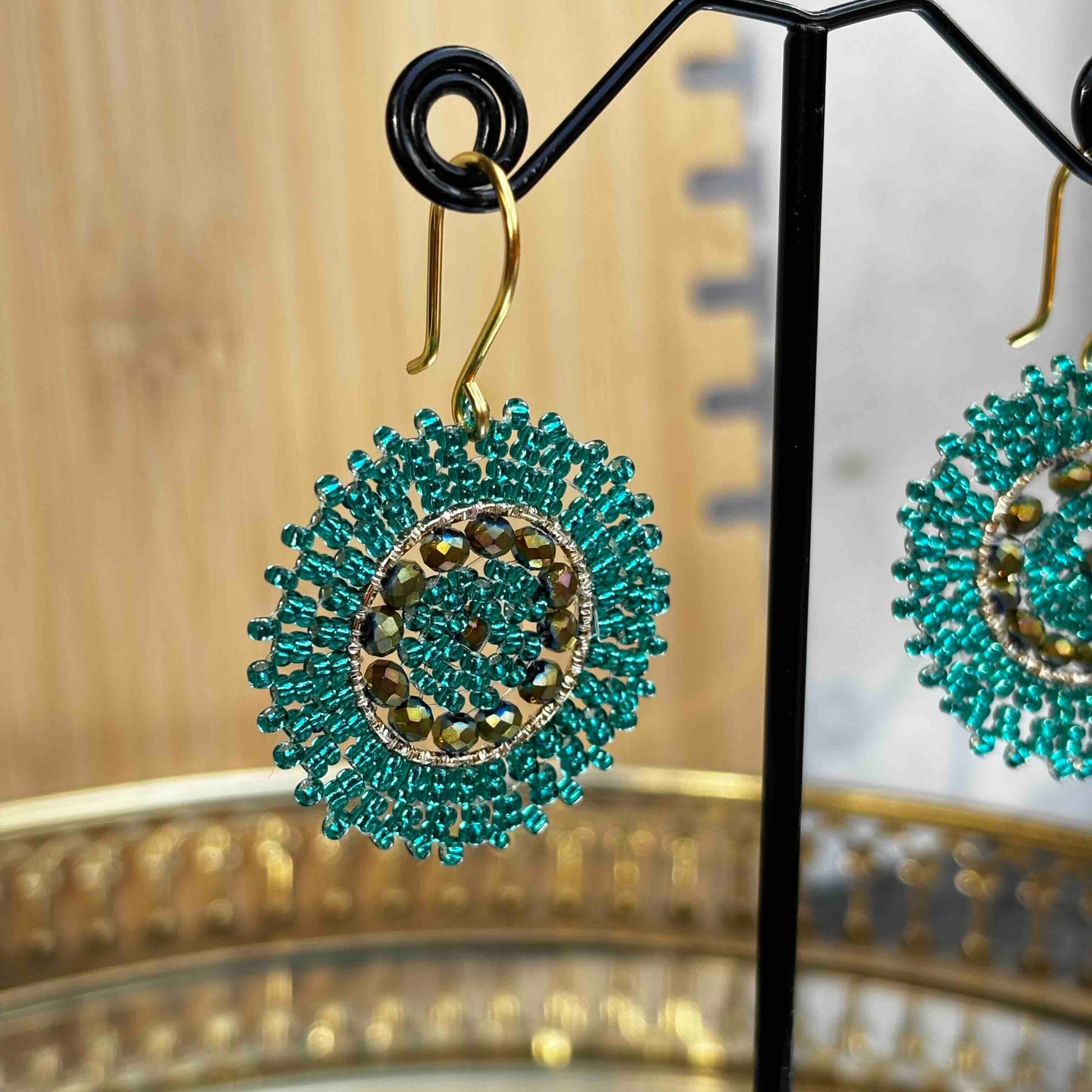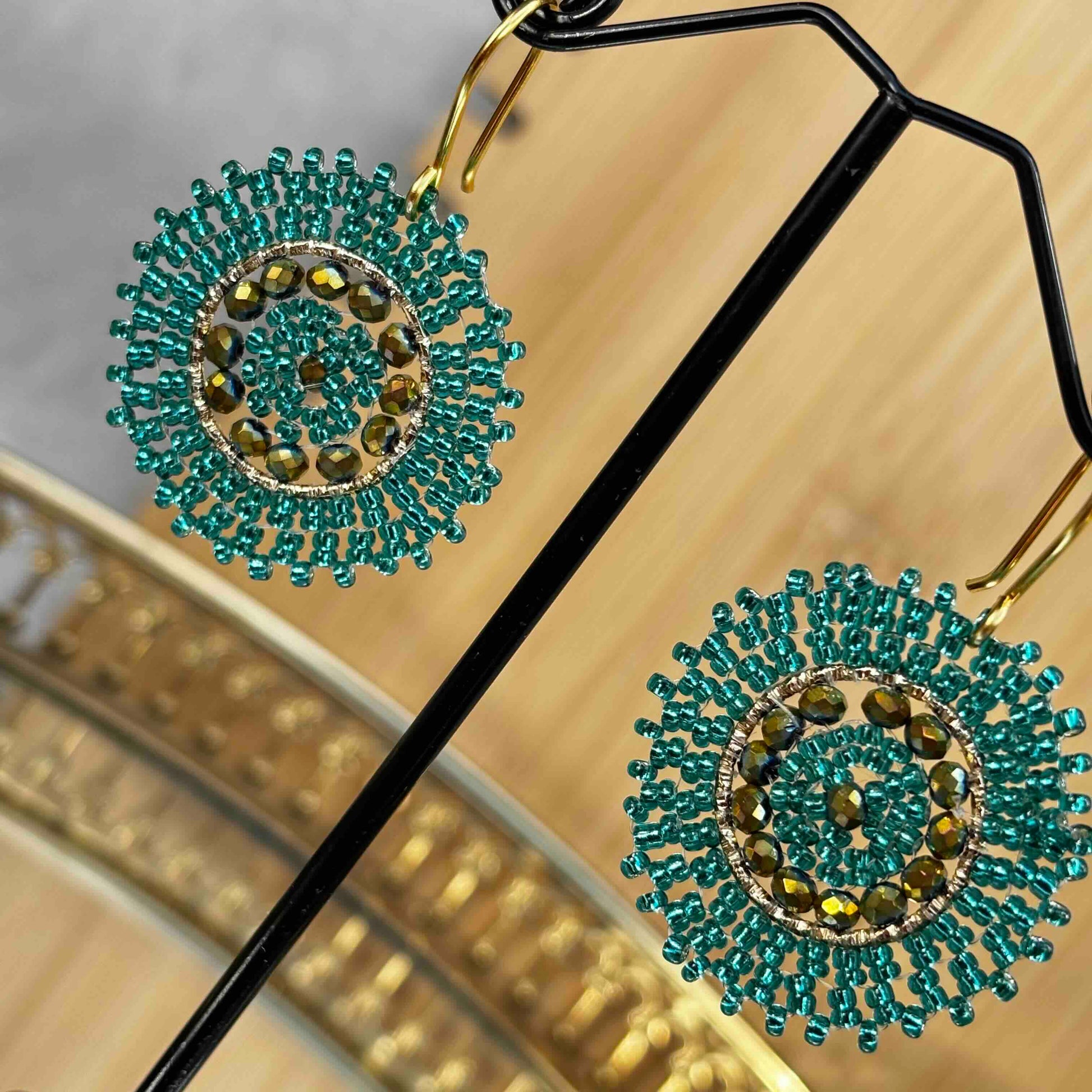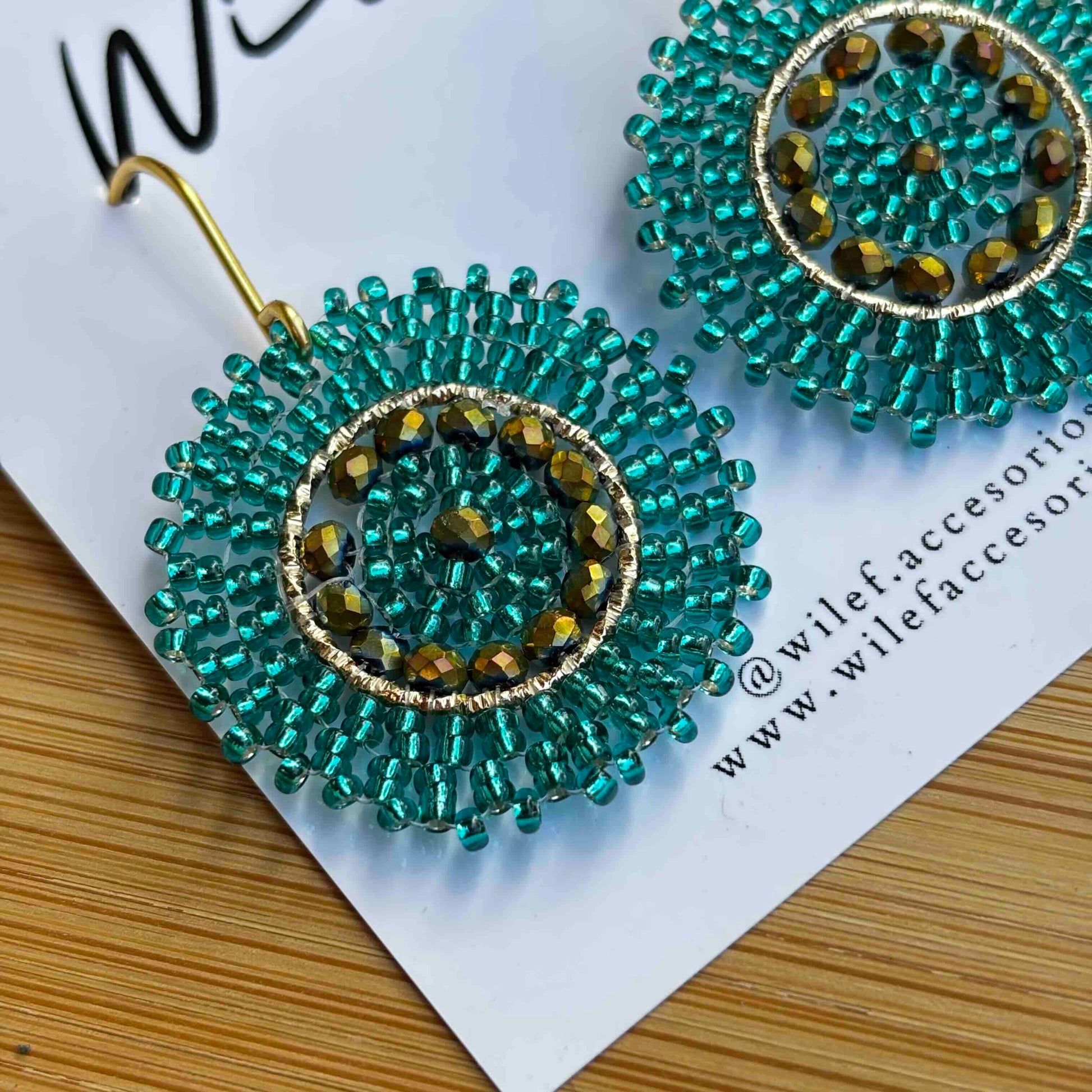 Aros Tejidos a Mano con Mostacillas / Mini Mandalas Verde
