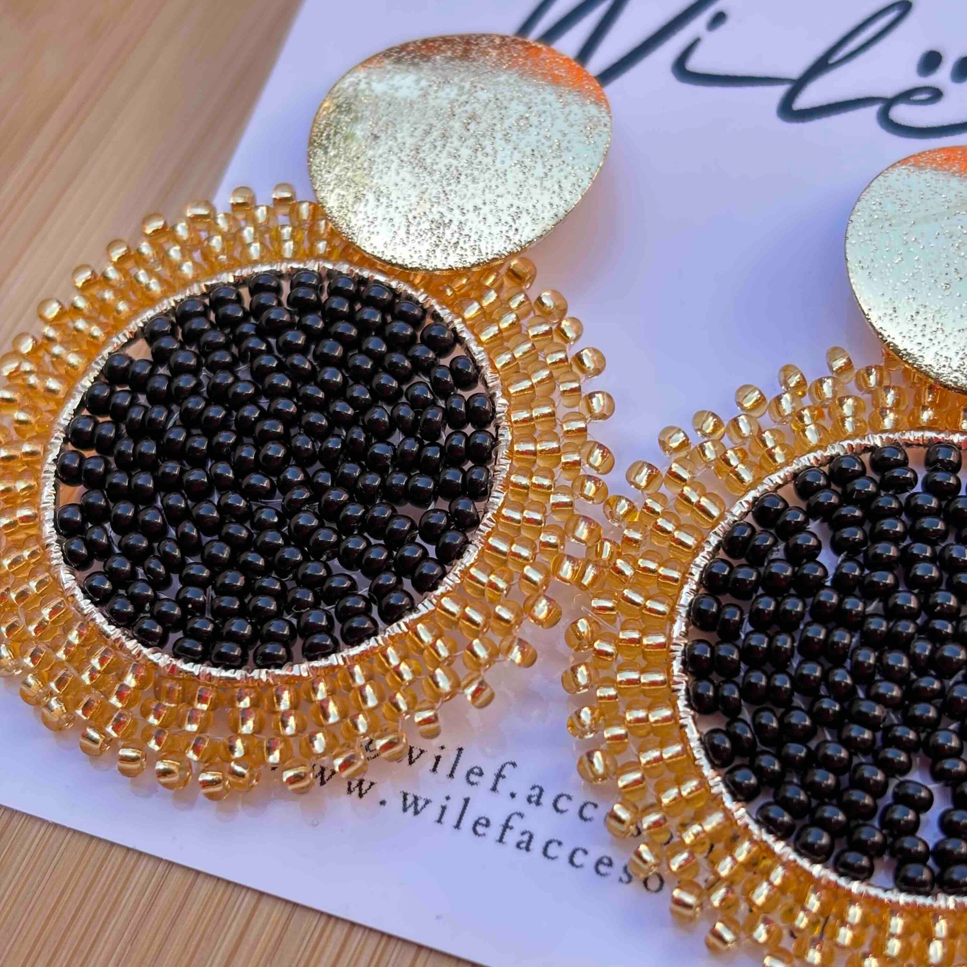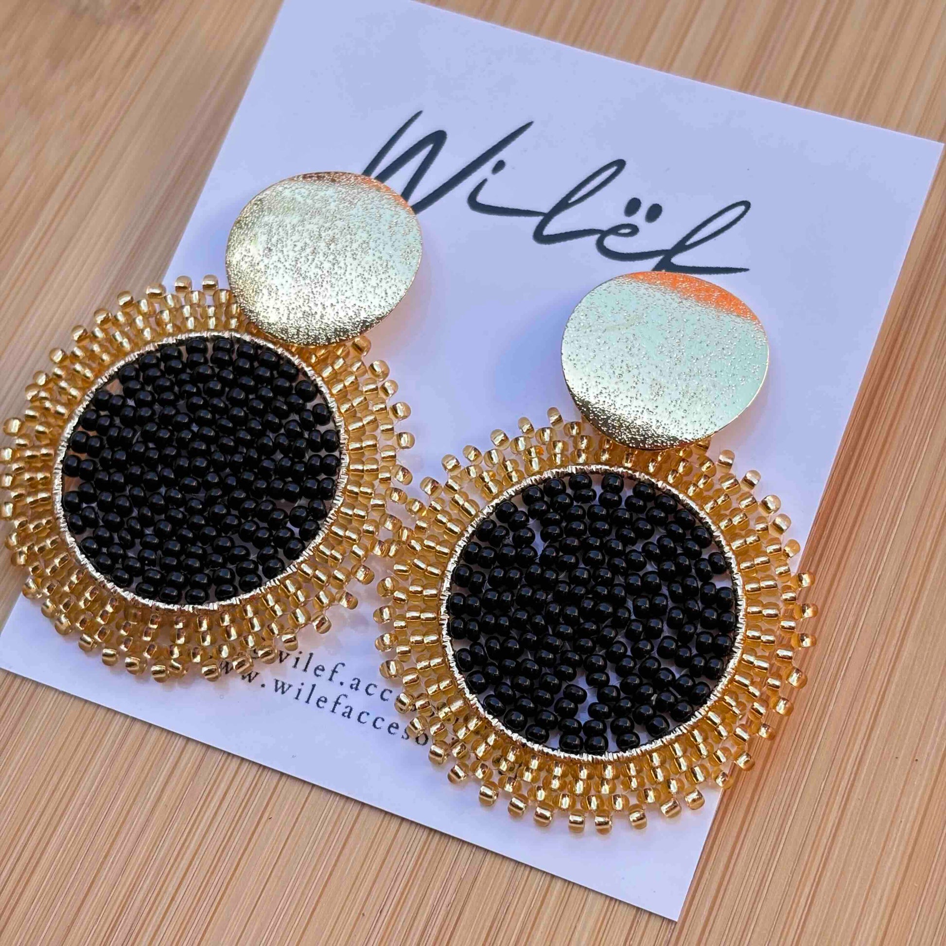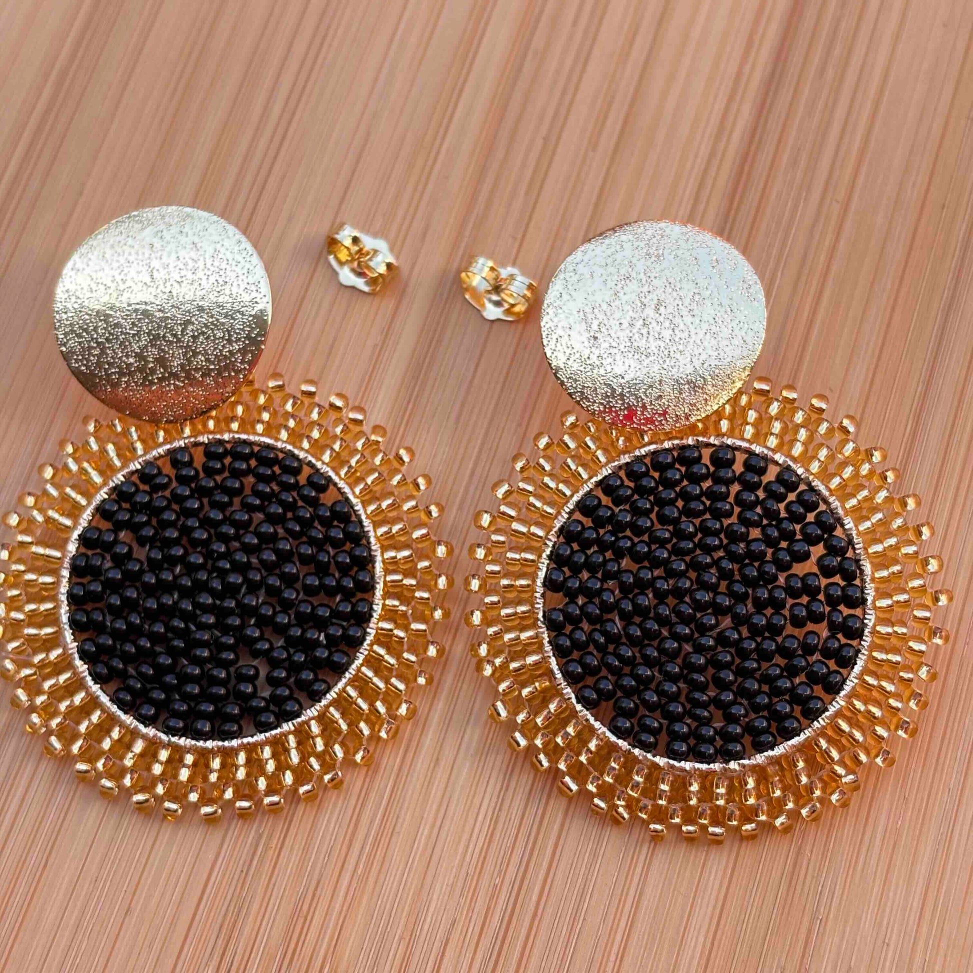 Aros Tejidos a Mano con Mostacillas / Mandalas Unicolor negra