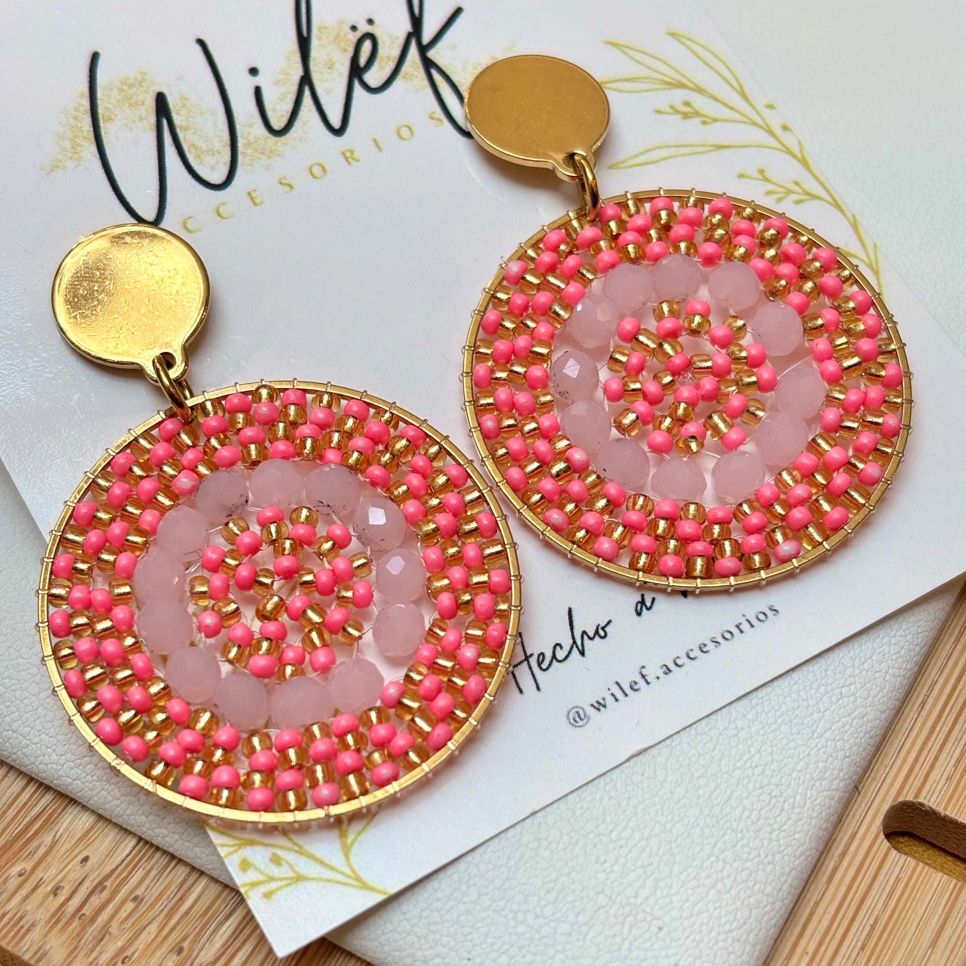 AROS TEJIDOS MOSTACILLAS COLOR ROSADO/ MANDALAS