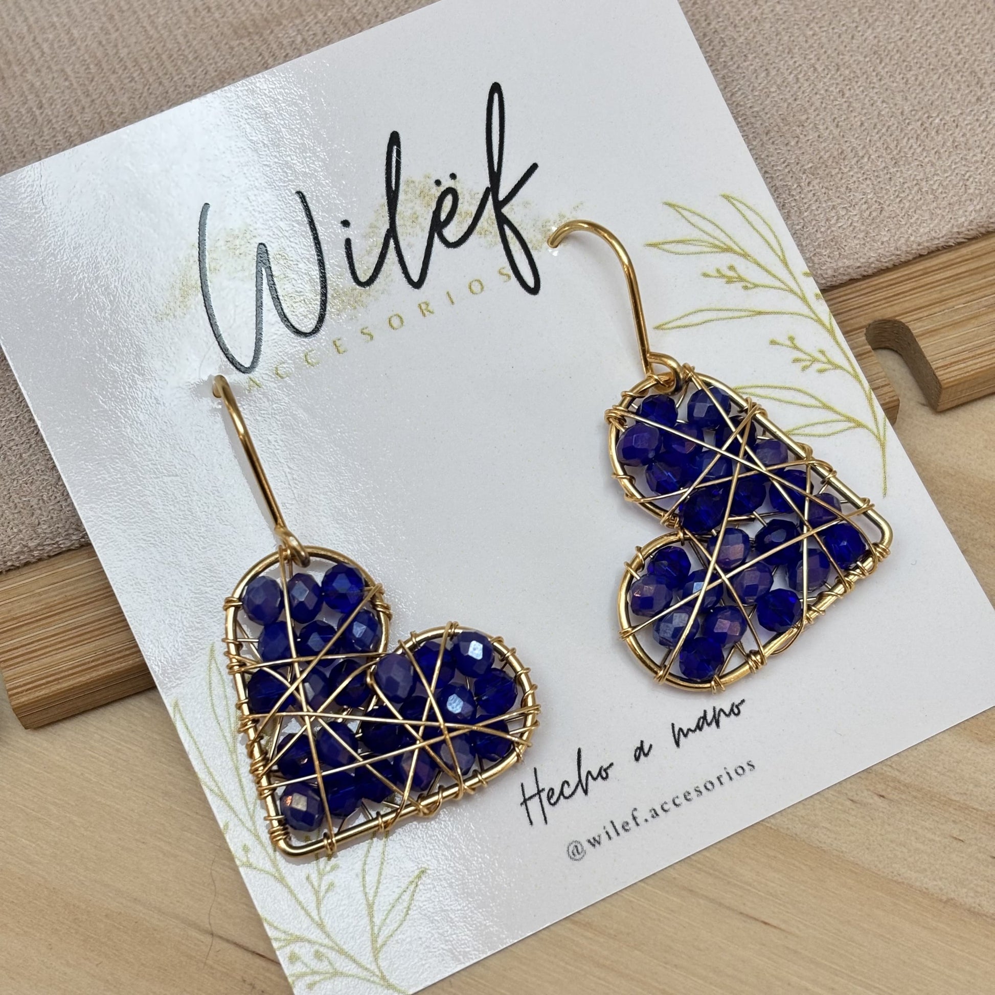 AROS CORAZON ALAMBRISMO - COLOR AZUL - DISEÑO COLGANTE