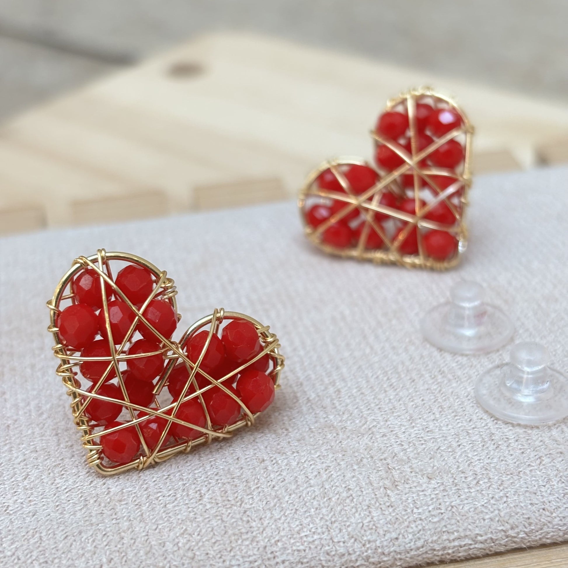 AROS CORAZON ALAMBRISMO - COLOR ROJO - DISEÑO TOPITO