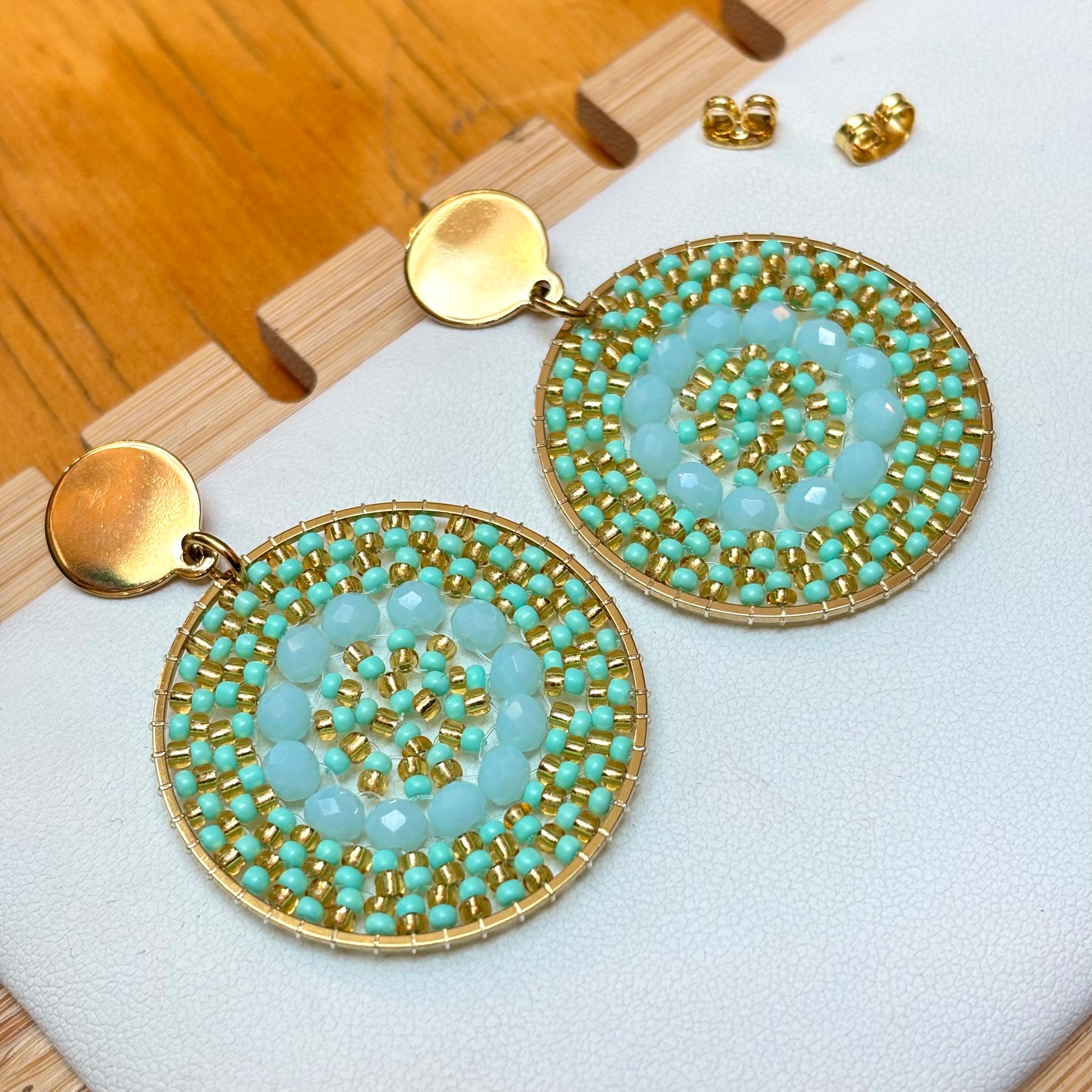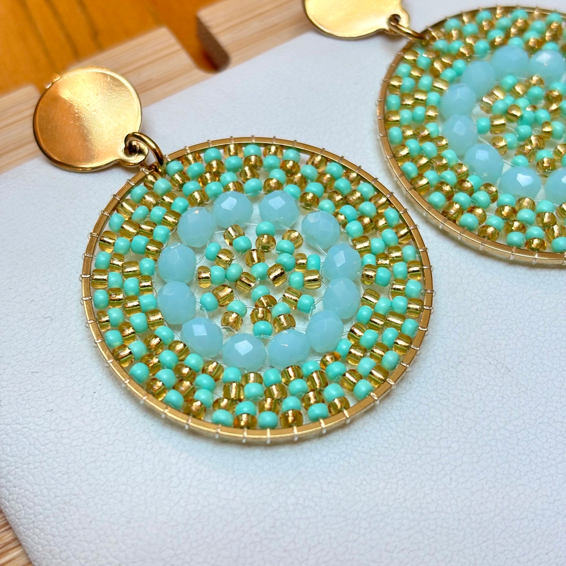 AROS TEJIDOS MOSTACILLAS COLOR MENTA/ MANDALAS