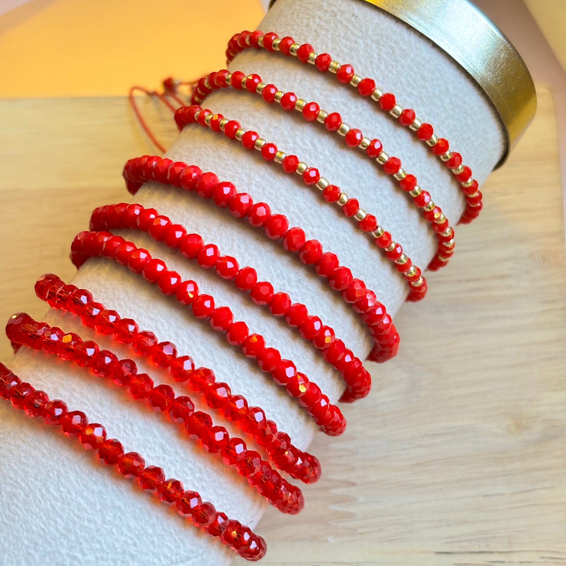Pulseras Rojas de Protección – Mostacillas y Cristales ✨ROJO TRASLUCIDO